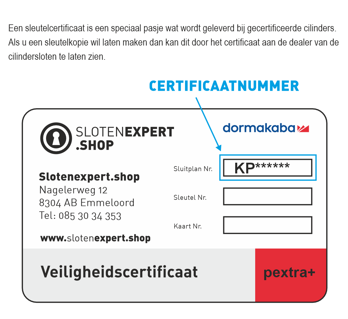 Het sluitplan nummer staat vermeldt op het veiligheidscertificaat die u bij de sleutel heeft gekregen. Dit nummer begint met KP****** en moet u bij bestelling toevoegen.